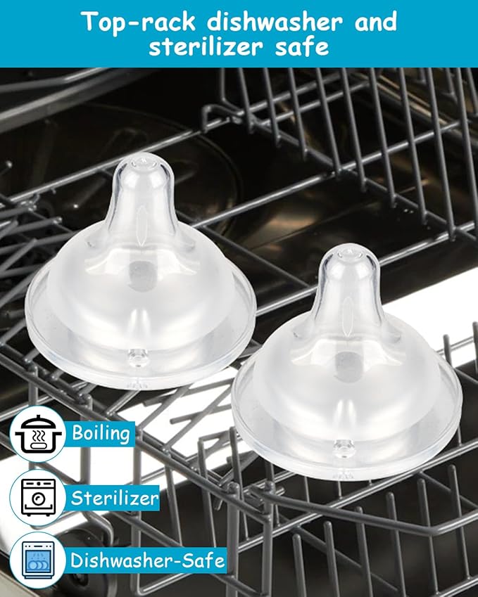 - Safe & Convenient: Made from 100% food-grade silicone, our nipples are BPA-free and PVC-free, ensuring your child’s safety. Plus, they’re dishwasher and sterilizer safe for effortless cleaning.