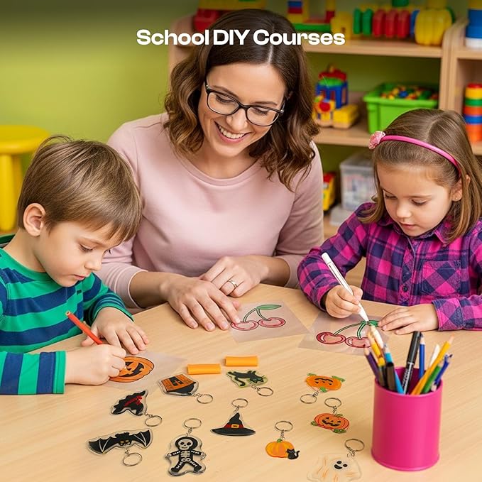 - Wide Applications: Our shrink paper keychain set can make keychains, jewelry, gift tags, bookmarks, and ornaments—plus DIY hair clips, party favors, or scrapbook accents. The finished works can also be Christmas, Halloween, and birthday presents for family and friends—unleash your creativity and easily create your own DIY works