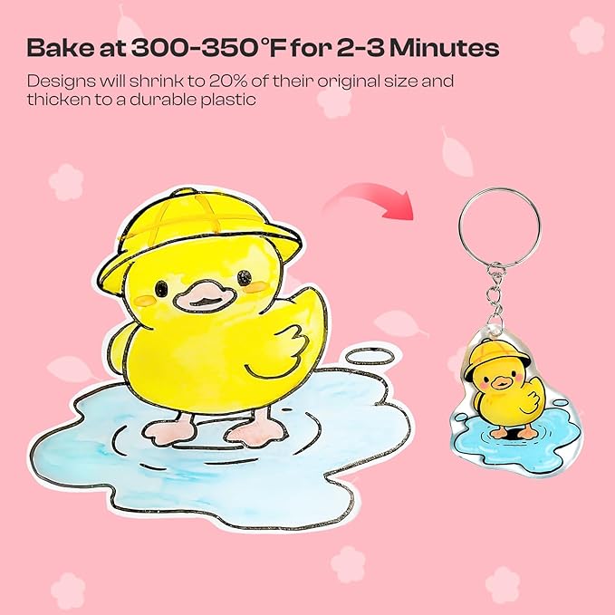 - Easy to Use: Just draw and color your favorite designs on the frosted side, cut them out with scissors (pre-punch holes if needed), then bake at 300-350°F for 2-3 minutes. Wait for it to curl and flatten back, then take it out and press lightly with a heavy object—your handmade piece is done