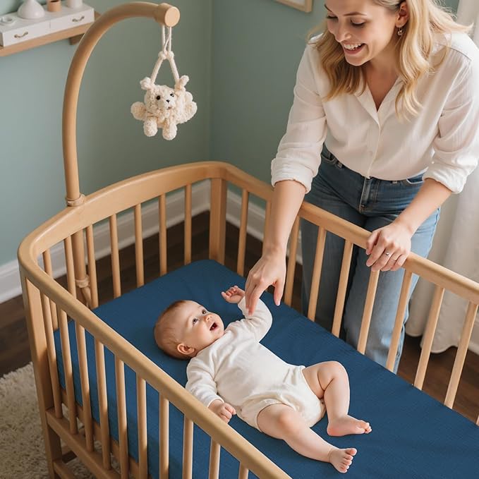 - TPU Waterproof Bassinet Sheets: The baby bassinet sheets are made of unique fabric, top layer is muslin fabric, soft and comfortable, bottom waterproof TPU layer, no leakage, keeps dry; The surface of muslin bassinet sheets feels gentle against baby's delicate skin, offering a soft touch for newborns