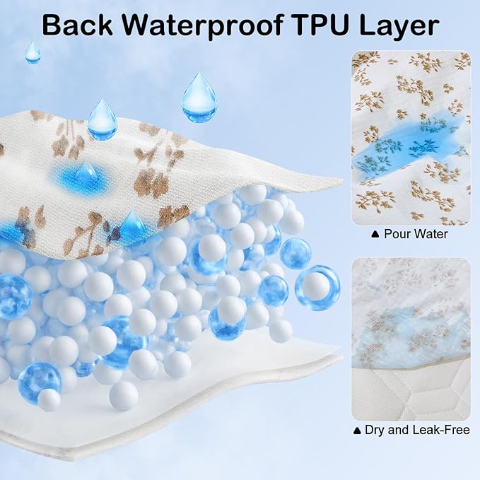 - TPU Waterproof Bassinet Sheets: The baby bassinet sheets are made of unique fabric, top layer is muslin fabric, soft and comfortable, bottom waterproof TPU layer, no leakage, keeps dry; The surface of muslin bassinet sheets feels gentle against baby's delicate skin, offering a soft touch for newborns