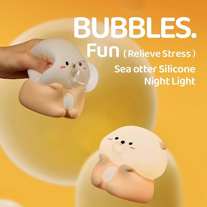 - 【Meet the Playful Bubble Otter: Your New Glowing Friend!】Brighten your room with a unique and interactive night light! This adorable Bubble Otter is more than just a lamp; it's a playful companion. Gently press its soft body, and watch as it blows a charming "bubble" that playfully peeks out and retreats. This delightful mechanical action creates a cheerful and relaxing atmosphere, making it a perfect bedside lamp or decorative accent for any bedroom, desk, or dorm room. It's the perfect blend of a cozy LED night light and an engaging fidget toy.