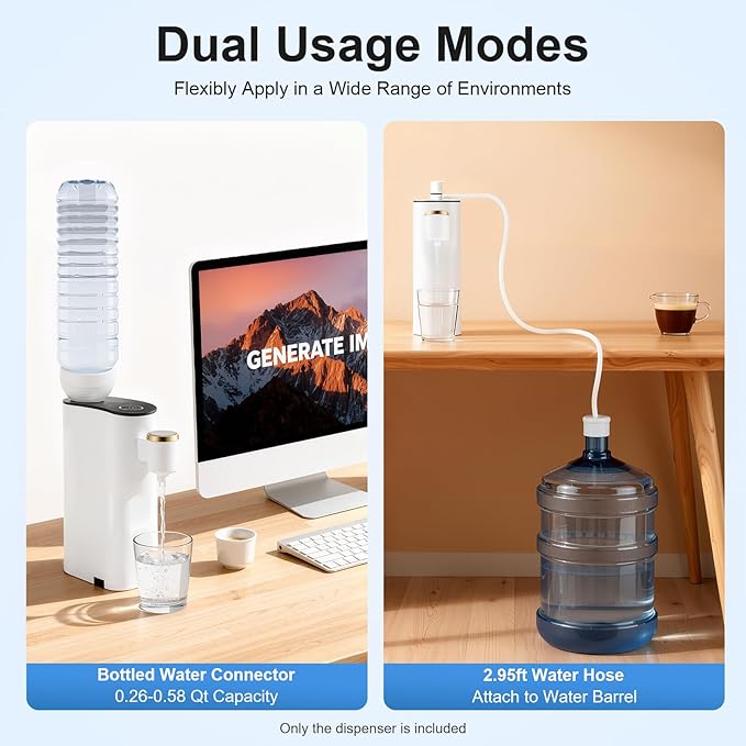 - 【Dual-Mode Convenience】Enjoy versatile use! Easily connect the included hose to a standard water bottle for personal use or to a large bucket for gatherings, making it perfect for any situation