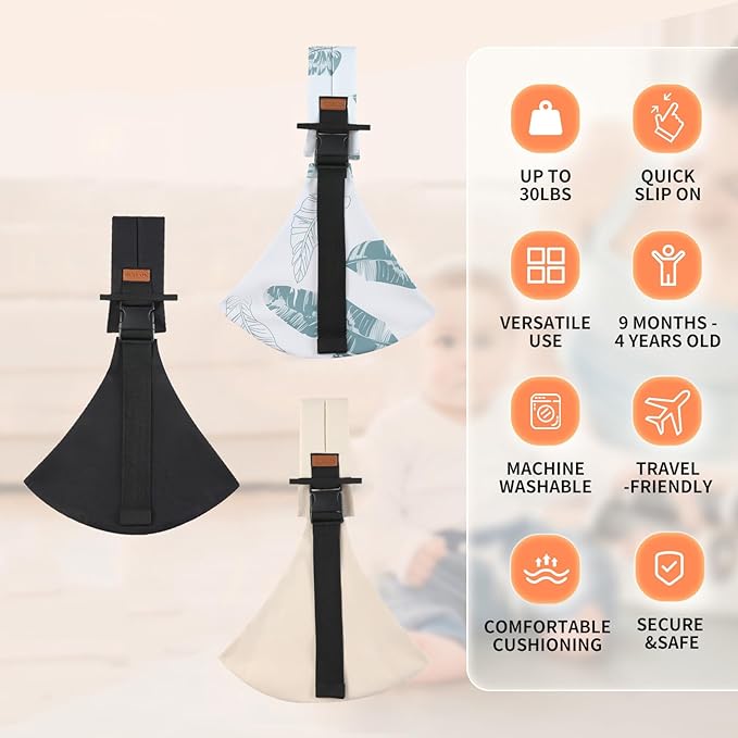 - Lightweight, Breathable & Travel-Friendly – Lightweight yet durable, this baby sling carrier toddler is made of premium cotton with breathable mesh zones to keep both you and your baby cool in warm weather. Compact enough to fit into your diaper bag or travel backpack.