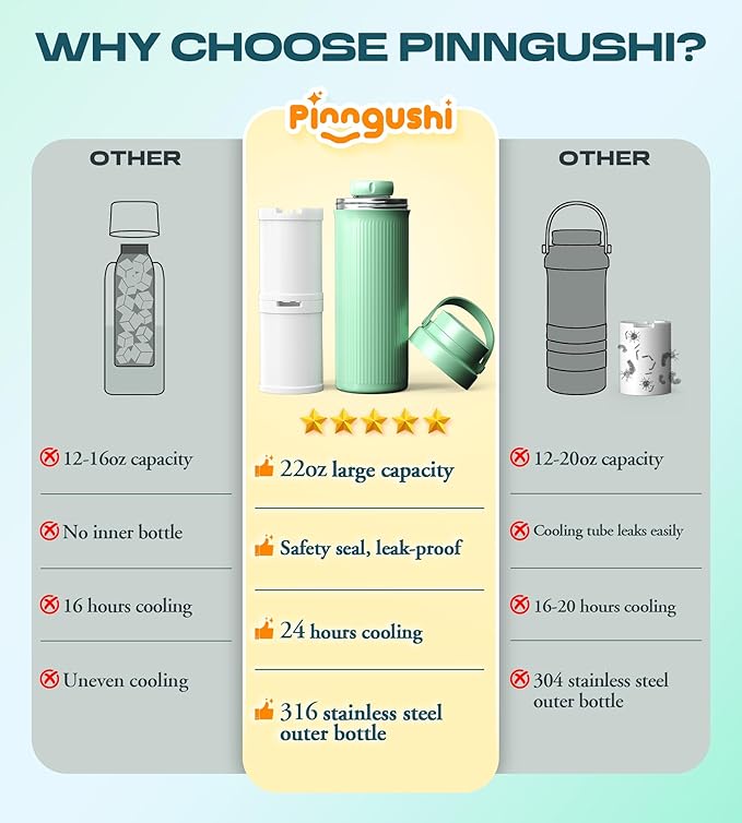 - 24 Hours Fresh & Nutrient-Safe - The PINNGUSHI Breast Milk Cooler Bottle uses 360° cooling tube technology to keep milk chilled for up to 24 hours with one overnight freeze (12 hrs at 0°F). Locks in nutrients, prevents spoilage, and keeps milk fresh wherever you go.