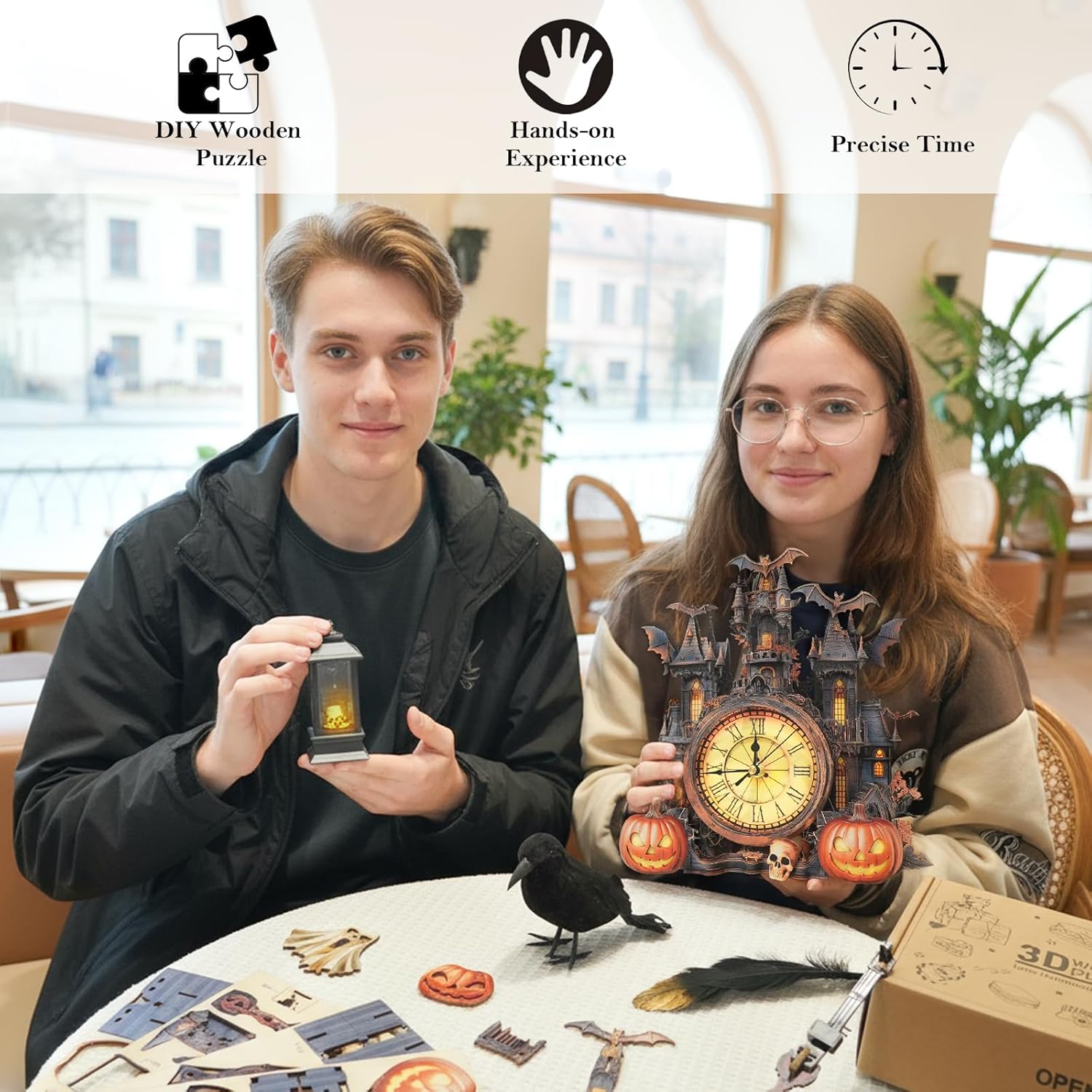 - 【3D Puzzles for Adults】Build a stunning mechanical clock with this intricately designed DIY clock kit, featuring a three-dimensional Halloween cottage motif and roman numeral dial. Perfect for hobbyists seeking challenging 3D puzzles that combine artistry with engineering.