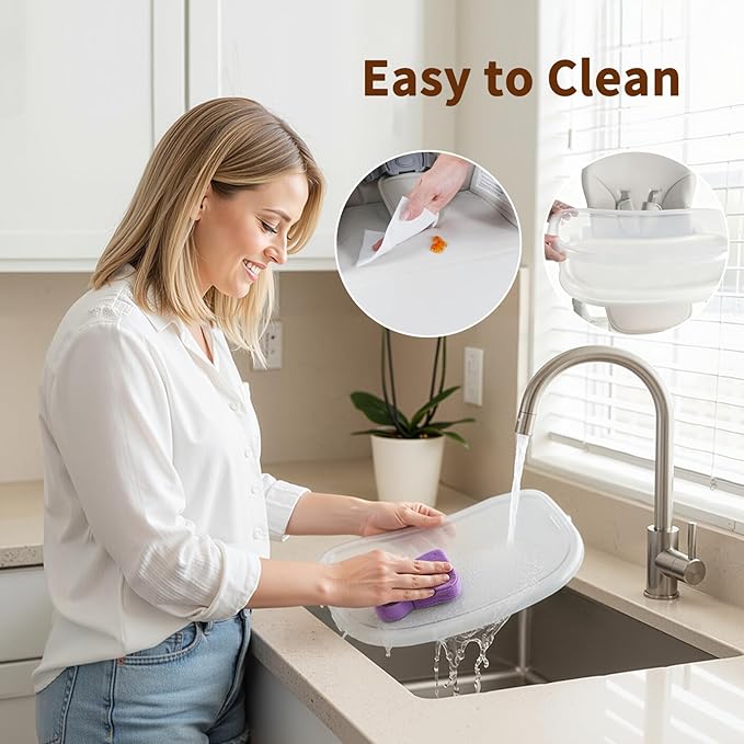 - Wipeable Seat Cushion: The padded seat is soft and easily wipeable. No need for complicated cleaning—just a quick wipe keeps the high chair fresh and ready for next use