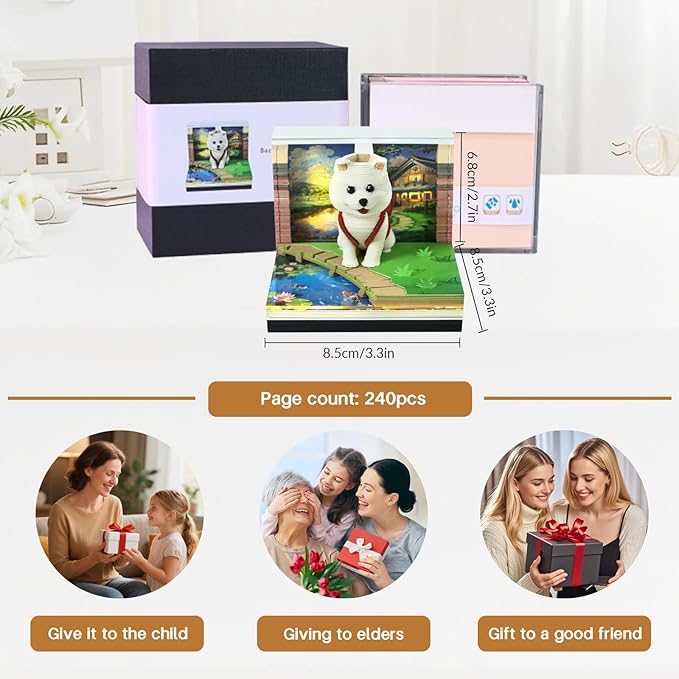 3d Calendar 2026,The Combination Of Paper Carved Lights And Artistic Creativity,Backpack Dog 3d Calendar,Suitable For Note Taking,Decorative Ornaments,Holiday Gifts (white)