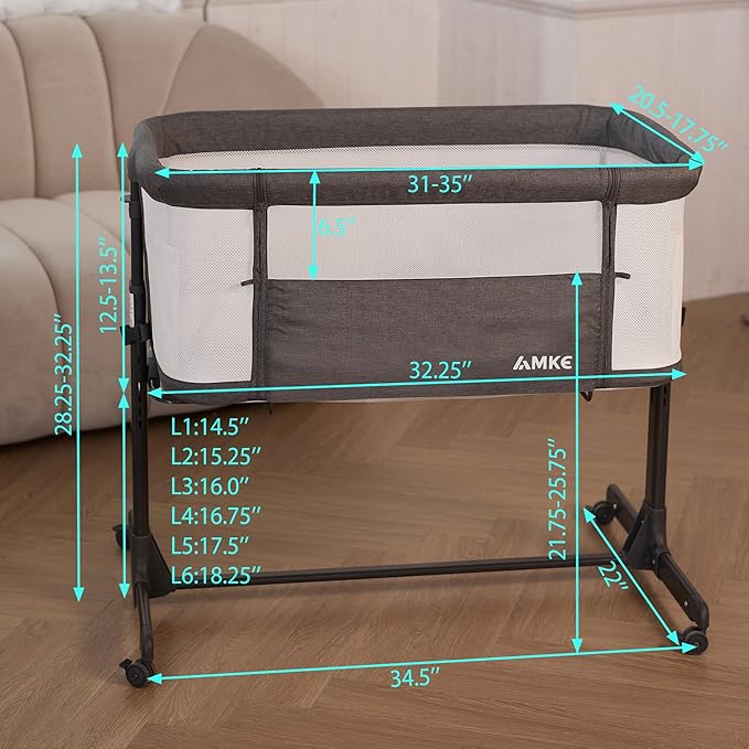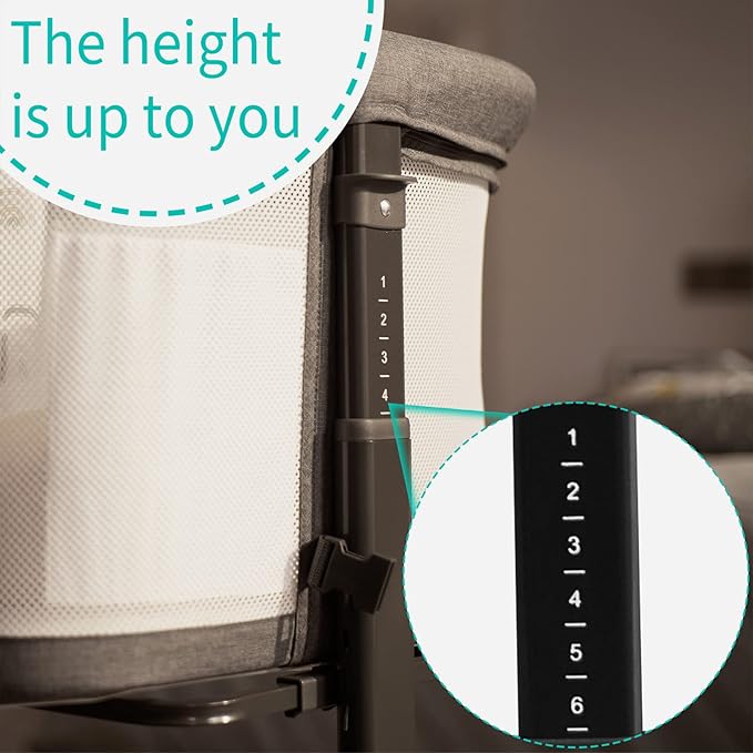 - 6-Level Height Adjustment for Perfect Bedside Alignment: Easily create a secure extension of your own bed.This bassinet bedside crib features 6 precise height adjustments to fit seamlessly alongside most adult bedframes, making it the perfect bed side bassinet newborn solution for effortless nighttime feeding and bonding