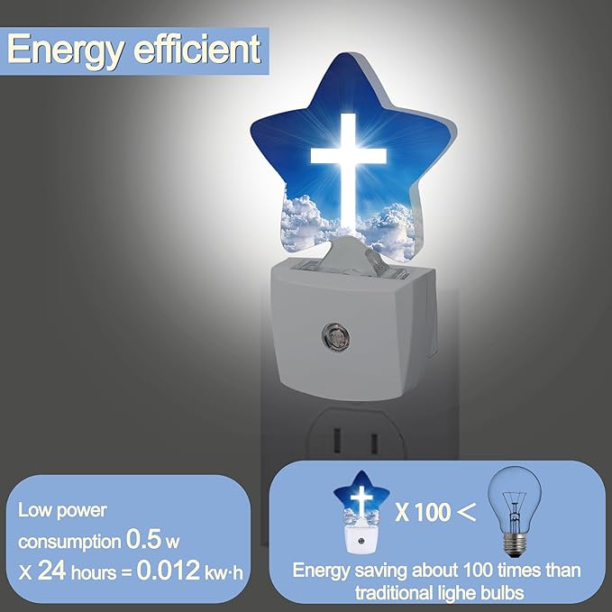 Cross Heaven Night Light,White Cross Sunset Plug-in Star Night Lights with Dusk-to-Dawn Sensor for Bedroom,Bathroom,Living Room Sleep Friendly Lamp for Women Girls Boys Gift,0.5W