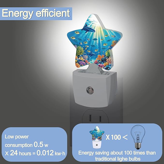 Underwater World Night Light,Sea Ocean Fish Plug-in Star Night Lights with Dusk-to-Dawn Sensor for Bedroom,Bathroom,Living Room Sleep Friendly Lamp for Women Girls Boys Gift,0.5W