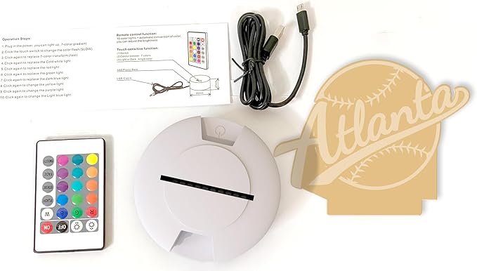 CLORURBANLIVE 3D Baseball Atlanta Night Light 3D Illusion Lamp with Remote Control 16 Color Options Sports Decor Lighting for Fans - Multicoloured OneSize