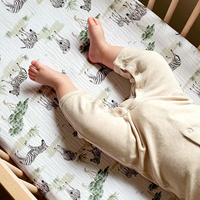 Muslin Bassinet Fitted Sheets, 2 Pack for Baby Boy and Girl, Soft Breathable Baby Pad/Mattress Sheet, Fit for Hourglass Oval and Rectangle Bassinet Mattress (Cute Zebra, Bassinet Sheets 2 Pack)