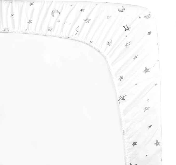 American Baby Company 100% Natural Cotton Fitted Cradle/Bassinet Sheet 36" x 18" - Soft, Breathable & Hypoallergenic Bed Sheet, Gray Stars and Moons, Neutral for Boys & Girls (Pack of 2)